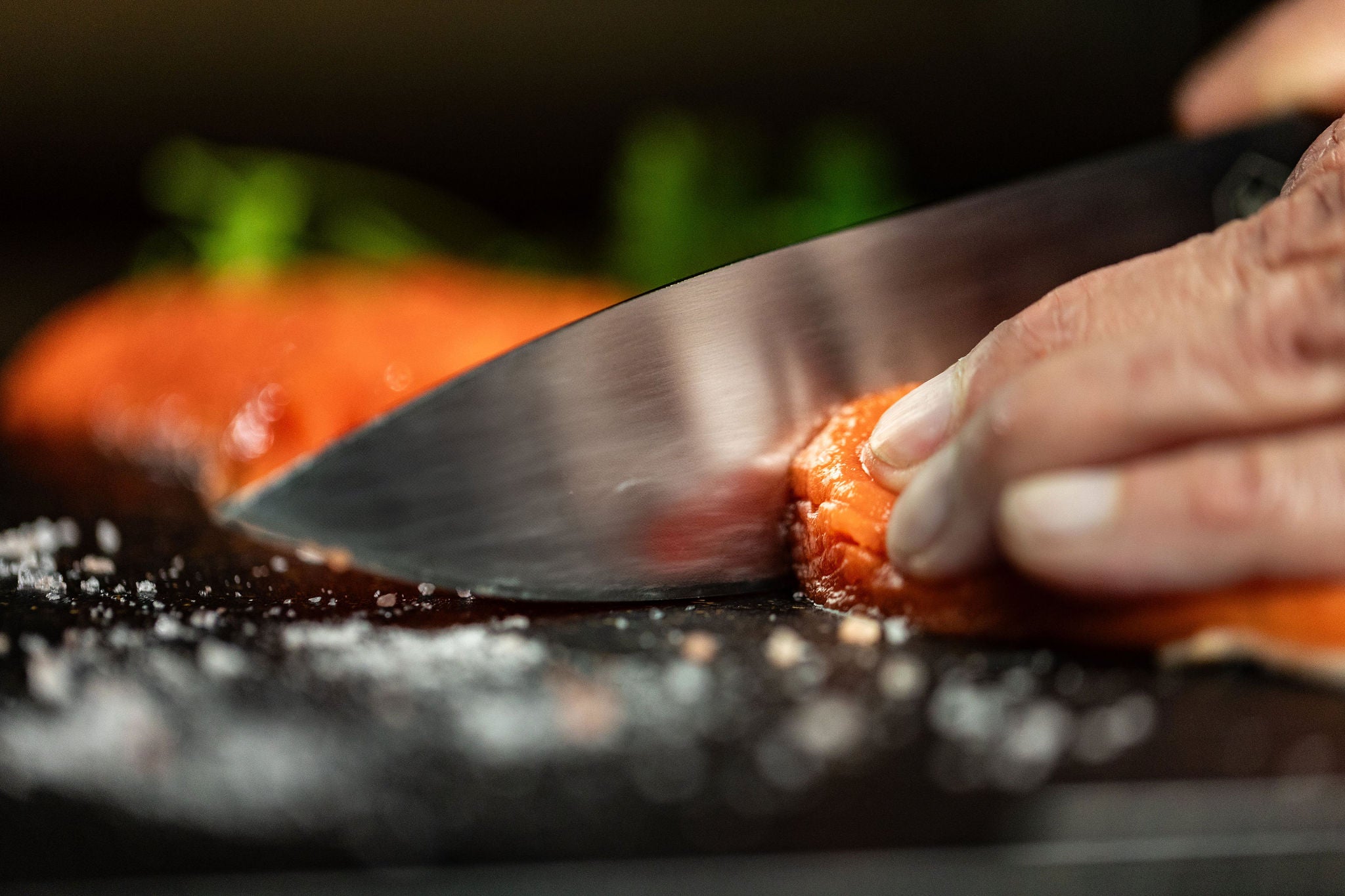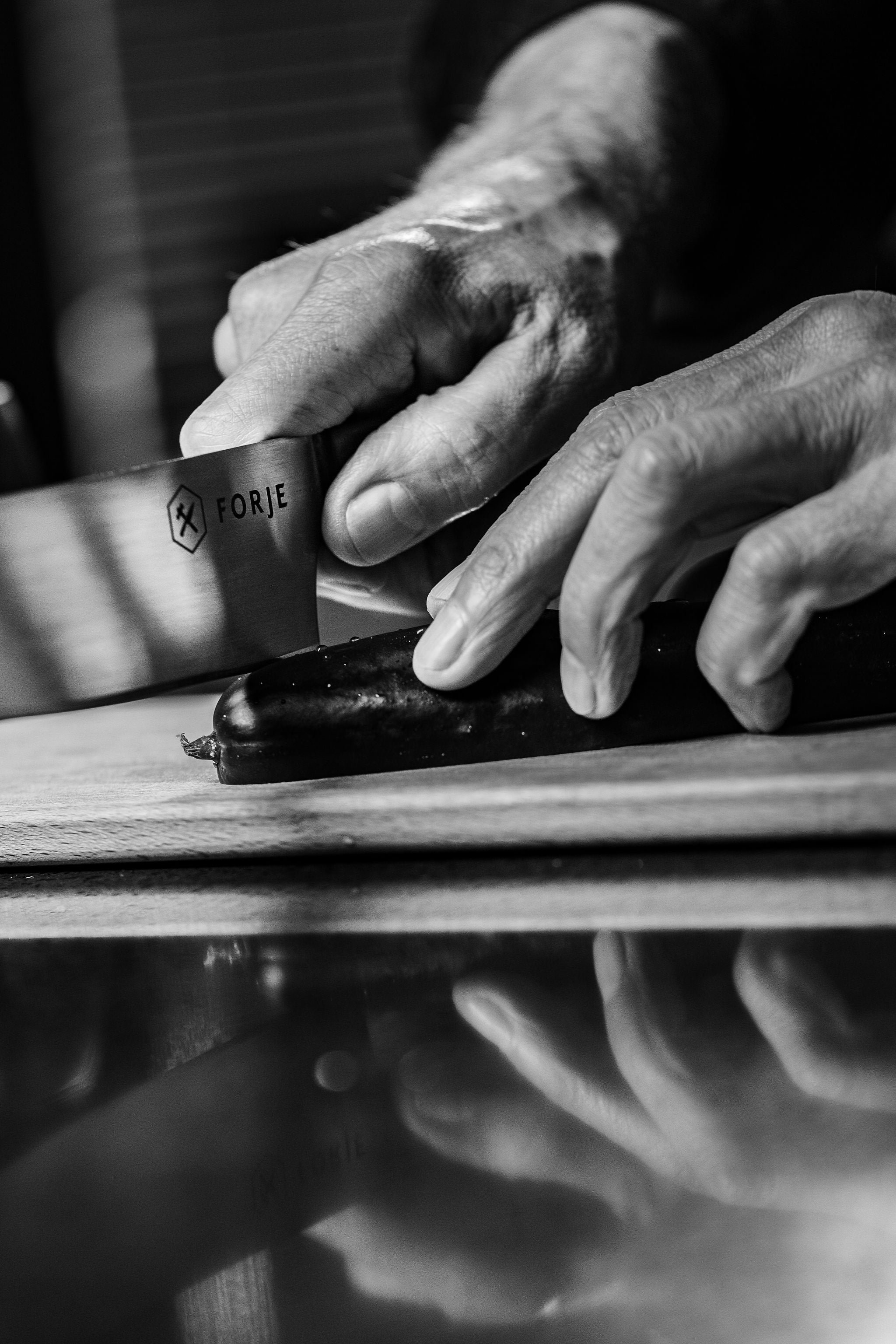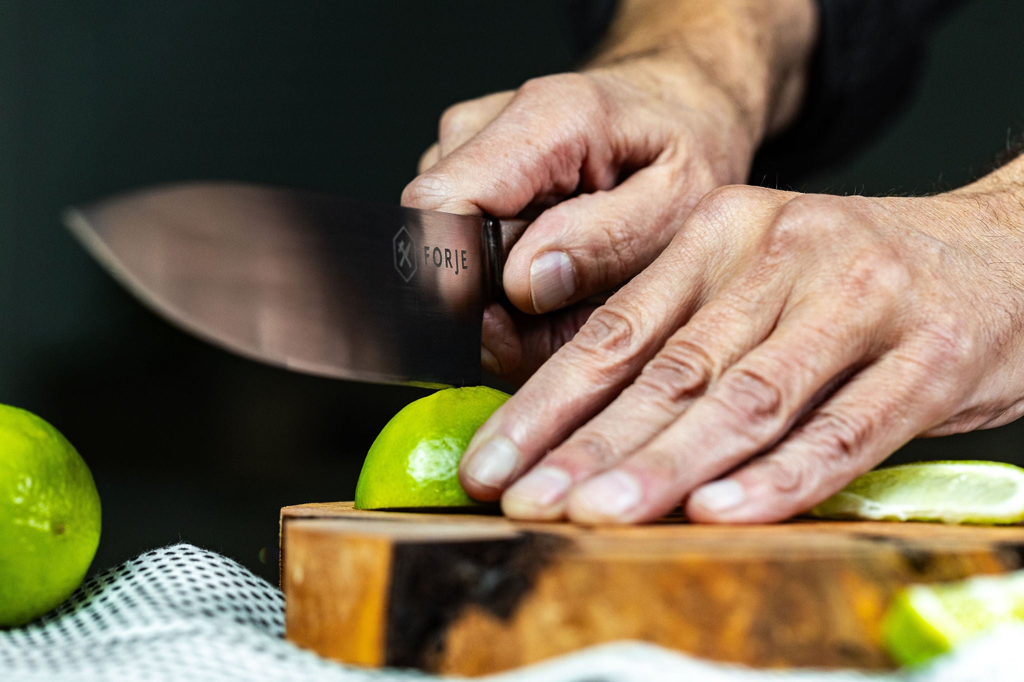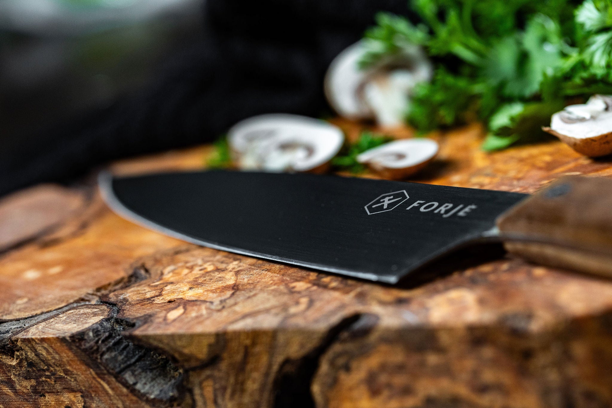 From home cook to professional chef, from vegetarian to carnivore, this knife is designed to be versatile in the kitchen. Cooking is meant to be an enjoyable experience and the quality of your knife can have immense impact. Imagine you’re in the kitchen, music playing, a glass of red wine is poured, quality ingredients are laid out on the countertop. There’s a liveliness for sure, but the moment is also meditative in the rhythmic slicing of vegetables and herbs, the dicing of meat. You are cooking to nourish yourself, your family, your friends—and we all know the best meals are made with love. The Forje Chef Knife, itself a labour of love, from the engineered steel to the North American walnut handle, is designed to provide a high-quality and pleasurable culinary experience.